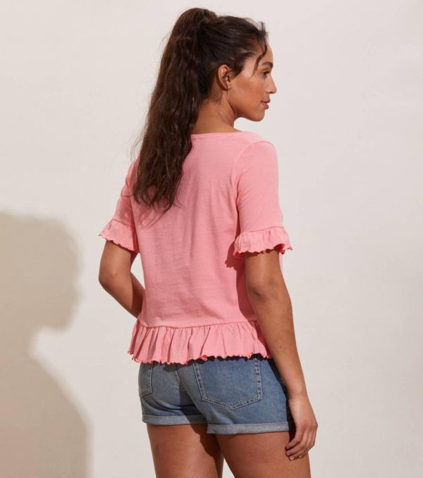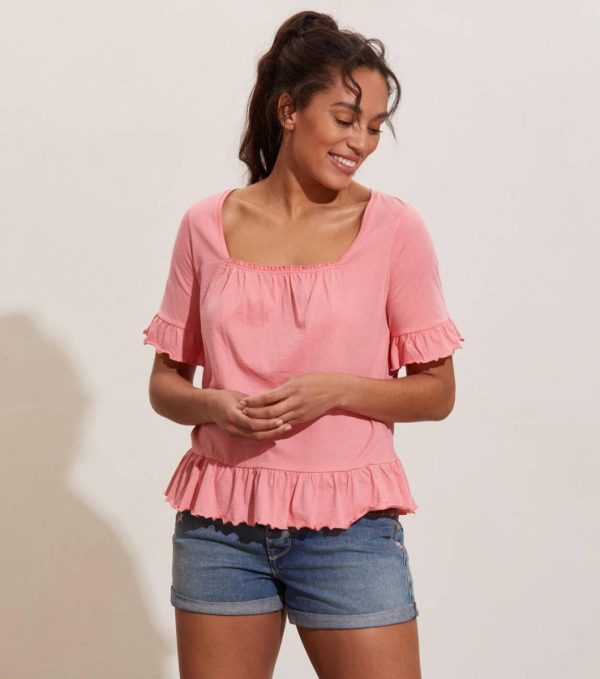 Odd Molly Reyna Top är en topp i ekologisk bomull med söta detaljer. Den har veckning i halsringningen fram och volanger i ärmslut och nederkant.